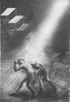 23 1/2X15 1/2 Charcoal, ink and oil paint on block print 2008